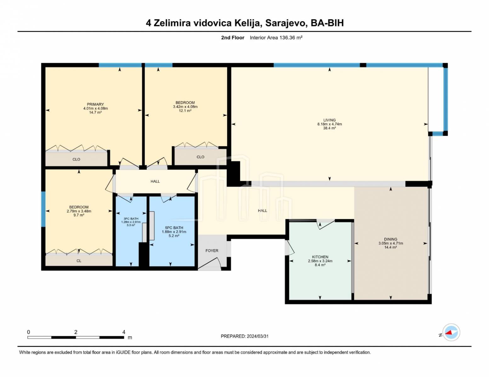 Stan jugoistočne orijentacije i pogledom na grad ima površinu od 148m2.